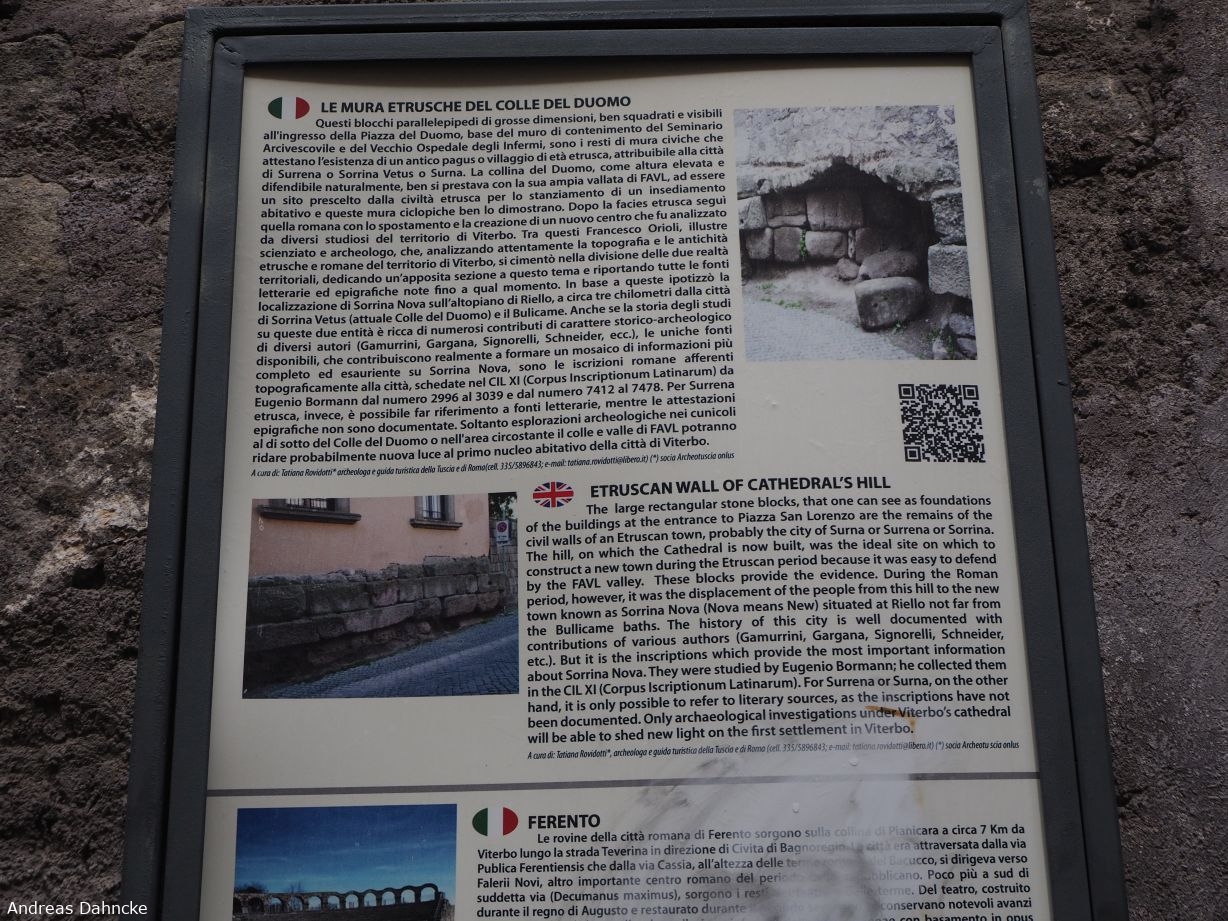 Infoschild für die etruskischen Mauern des Domhügels an der Via San Lorenzo