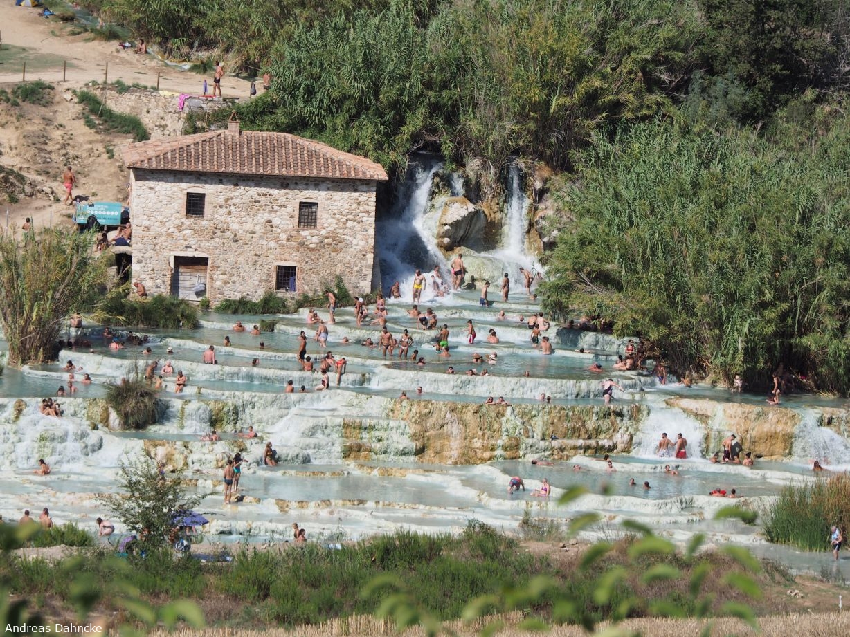 Von weiter Weg sind die Cascate del Mulino di Saturnia auch hübsch