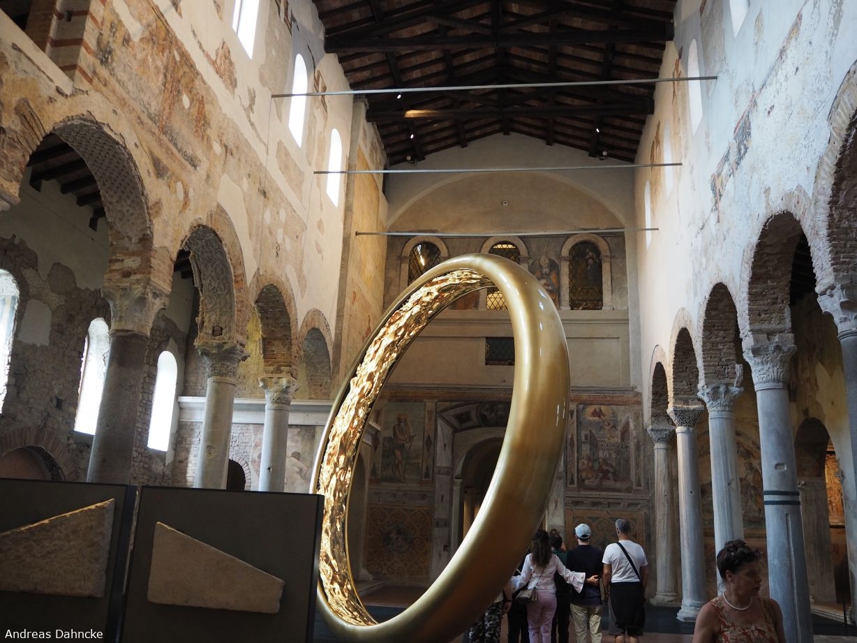 Museo di Santa Giulia: Das Kunstwerk "Plessi sposa Brixia" von Fabrizio Plessi (2023) in der Basilica di San Salvatore