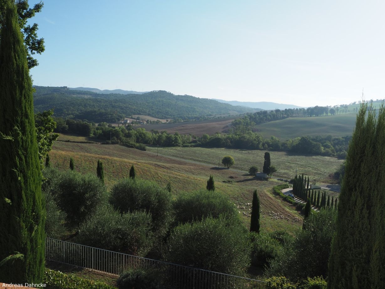 Ausblick von unserer Terrasse im Spa Resort Fonte Alla Lepre (NO)
