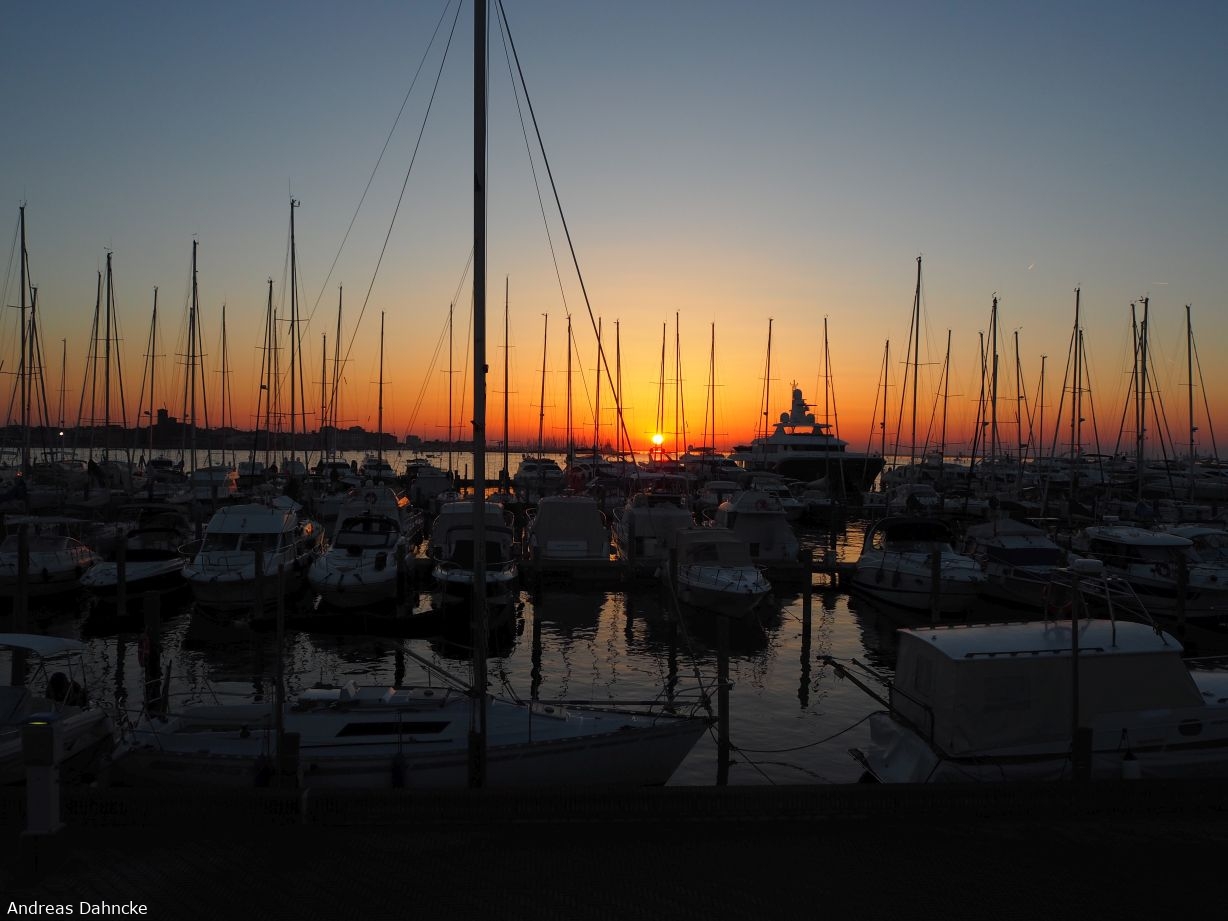 Sonnenuntergang über dem Jachthafen.