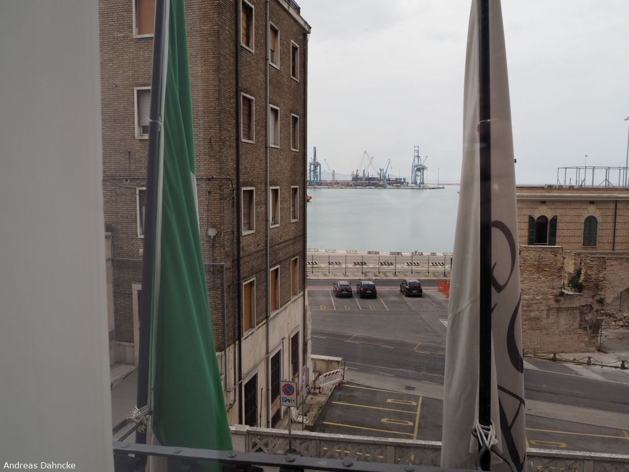 Aussicht aus unserem Zimmer im Grand Hotel Palace auf den Hafen von Ancona