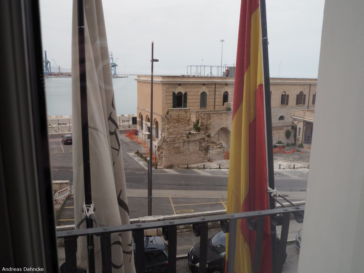 Aussicht aus unserem Zimmer im Grand Hotel Palace auf die Portella Panunzi