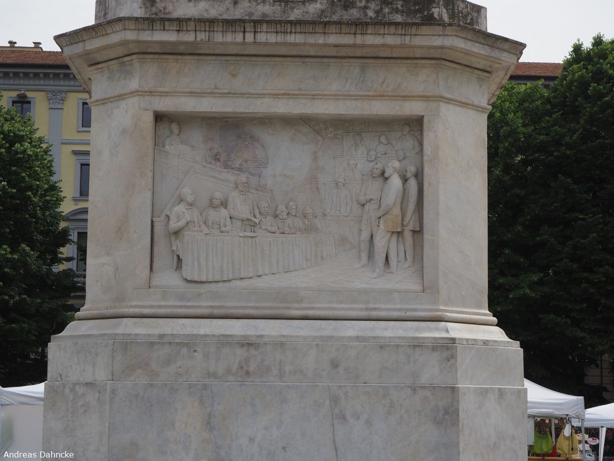 Sockel der Statue des Camillo Benso di Cavour auf der Piazza Camillo Benso di Cavour