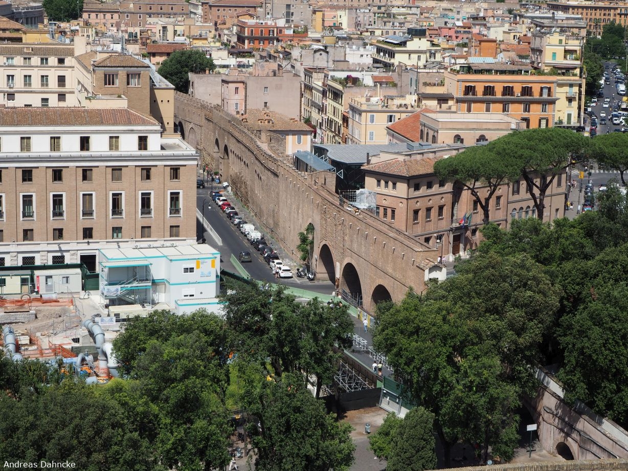 Blick auf den Gang zwischen Castel Sant'Angelo und derm Petersdom von der Dachterrasse des Castel Sant'Angelo