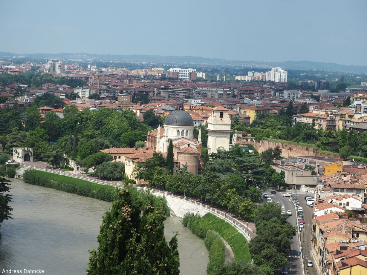 Blick auf Verona mit der Parrocchia di San Giorgio in Braida von der Piazzale Castel S. Pietro