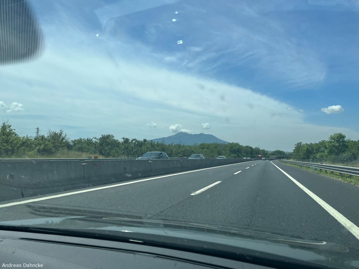 Auf der Autobahn E842 von Trani nach Rom. Vesuv