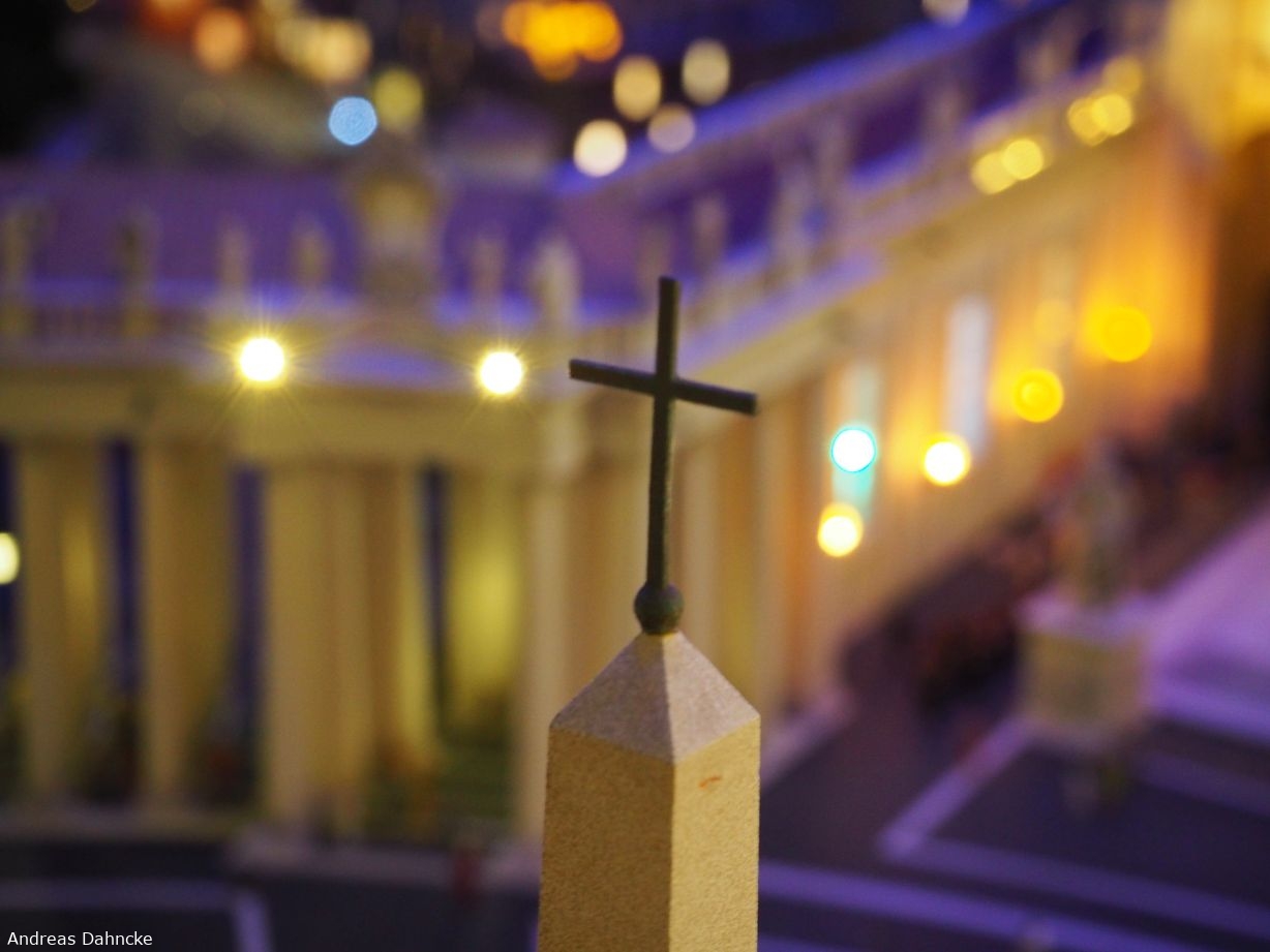 Spitze mit Kreuz des vatikanischen Obelisken auf dem Petersplatz, Vatikan