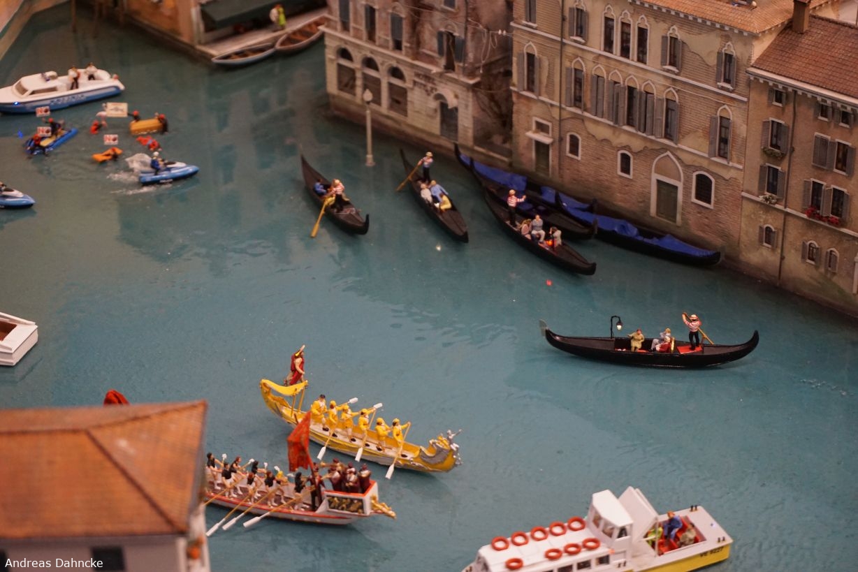 Venedig, Canale Grande mit Festboosten und traditionellen Gondeln zur Regatta Storica.